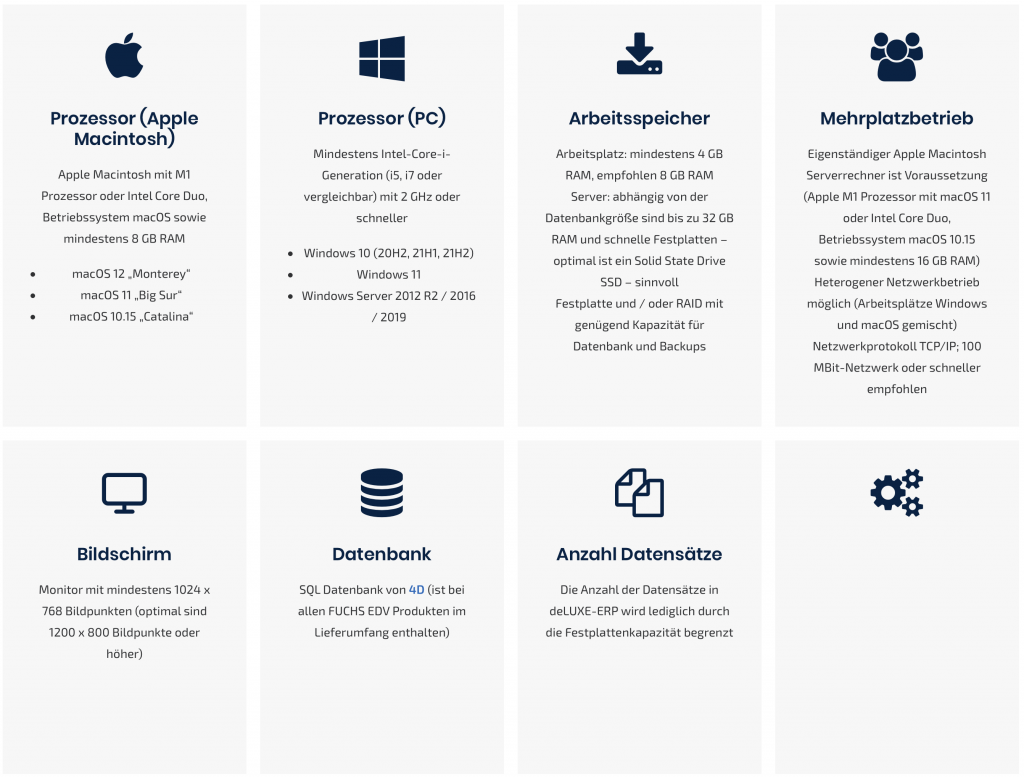 Bitte beachten Sie die Systemvoraussetzungen für deLUXE-ERP V19