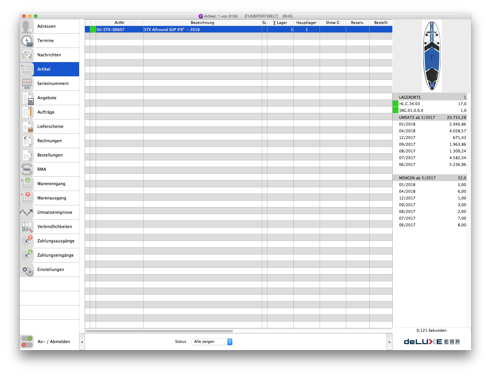 Das Warenwirtschaftssystem, d.h. deLUXE-ERP (Enterprise-Resource-Planning-System), stellt die zentrale Datenbasis für das komplette Unternehmen dar. Hier laufen die Daten zu Kunden, Lieferanten, Lagerbeständen, Verkäufen sowie Finanzbuchhaltung zusammen.