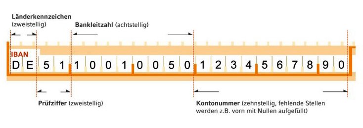 Mit SEPA ändern sich ALLE herkömmlichen Bankverbindungsdaten. Bisherige Kontonummern und Bankleitzahlen werden komplett abgeschafft und durch neue internationale Kontonummern ersetzt – die sogenannten IBAN (englisch: International Bank Account Numbers). Diese IBA Nummern bestehen für Deutschland aus 22 Stellen, in Österreich sind es 20, auf Malta gar 31 und in Norwegen nur 15. Für deutsche Bankkunden beginnt die IBAN mit DE am Anfang, es folgen zwei neue Ziffern, danach die altbekannte Bankleitzahl und Kontonummer.