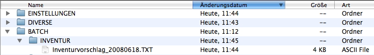 Lokal werden die Dateien im deLUXE-ERP_Objekte Verzeichnis im Unterverzeichnis BATCH/INVENTUR/ gespeichert.