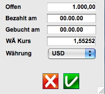 Stimmen die Währung der Rechnung und der Zahlung nicht überein, erfolgt eine Umrechnung in die Rechnungswährung auf Basis des angegebenen Kurses.