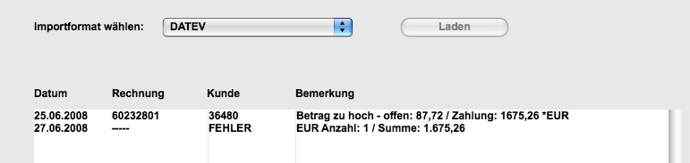 Der Import von Kundenzahlungen wurde so erweitert, dass die Währungsangabe in der Importdatei berücksichtigt wird. Daduch können auch Fremdwährungsbeträge den entsprechenden Rechnungen zugeordnet werden.