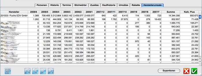 Über einen neuen Reiter "Herstellerumsatz" in der Anschriftenmaske können die Umsätze eines Kunden pro Hersteller ausgewertet werden.