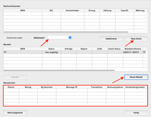 • Unter "Benutzungen" können Sie einsehen, wann die Mandate wie benutzt wurden.