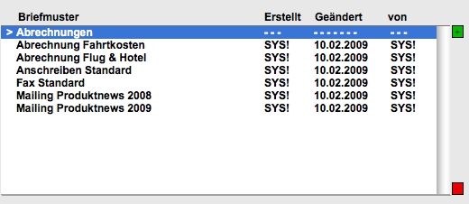 Die Ordner werden immer zu Beginn der Liste einsortiert. Neue Briefvorlagen erscheinen bei der Anlage immer am Ende der Liste und werden beim nächsten Aufruf eines Ordners alphabetisch einsortiert.