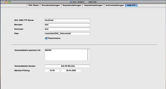 In den VIND Einstellungen des DHL Robots wird hiefür eine Liste aller Kundennummern angegeben für die diese Funktion aktiviert werden sollt. Außerdem wird ein Zeitintervall (z.B.: 60 Minuten) angegeben. Das System sammelt dann die Daten und erstellt alle 60 Minuten eine XML Datei.