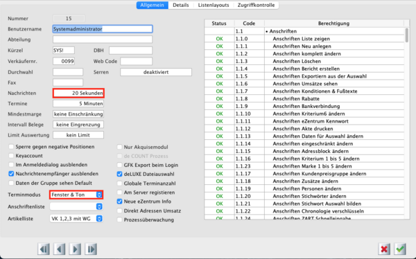 Ist im Benutzerverzeichnis des Empfängers die Option Nachrichten mit einem Zeitintervall versehen und der Terminmodus auf Ton gesetzt, ertönt ein akustisches Signal beim Empfänger der Nachricht.