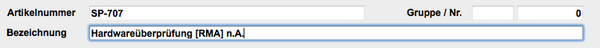 Mehr Information muss in dem Artikel nicht angelegt werden. Wünschen Sie jedoch eine Abrechnungsmöglichkeit über diesen Artikel, weil Sie zum Beispiel die Bearbeitung des RMA-Auftrages berechnen, so können Sie auch einen VK und eine Mengenberechnung (z.B. in Stunden) hinterlegen. Wenn Sie Textpositionen in Ihrem RMA-Auftrag wünschen, die den Reklamationsfall genauer beschreiben sollen, dann müssen Sie zusätzlich für jeden Fall (Gutschrift, Vorabtausch) einen Textartikel anlegen:
