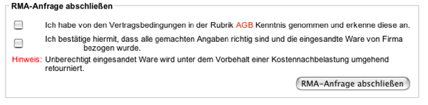 Um einen neuen RMA-Auftrag anzulegen öffnet der Kunde das RMA-Formular auf Ihrer Web-Site: