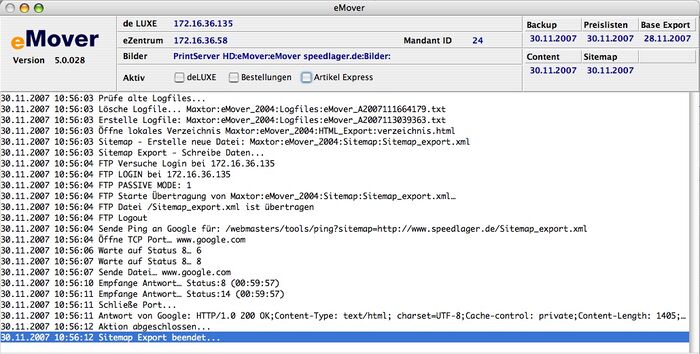 Der eMover prüft regelmäßig das Erstellungsdatum der lokalen Sitemap-Datei (wird oben rechts im Hauptfenster angezeigt).