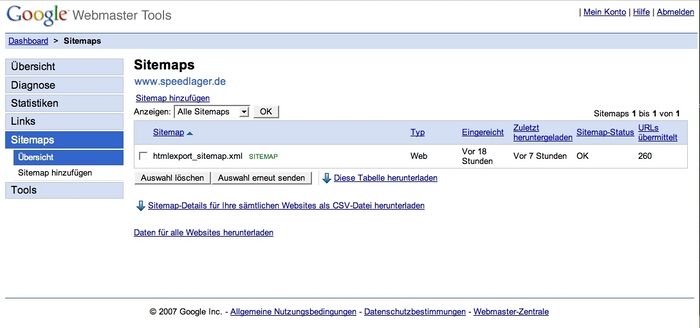 Die Sitemap Datei wird anschließend per FTP auf Ihren Webserver übertragen. Nach der ersten Übertragung muss die Sitemap Datei bei Google angemeldet werden.