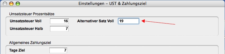 Anschließend tragen Sie den Prozentsatz unter "UST Einstellungen" ein.