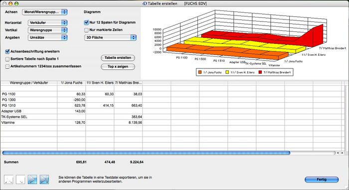 Das Diagramm wird nach dem Erstellen einer Tabelle gebildet und angezeigt. Beim Verändern der Diagrammoptionen oder dem erneuten Erstellen der Tabelle sowie beim Blättern in den Ergebnissen wird das Diagramm ebenfalls neu gezeichnet. Wird das Fenster in der Größe verändert erfolgt aktuell noch keine Anpassung. Nur 12 Spalten für Diagramm Um das Diagramm übersichtlich zu halten werden bei aktivierter Option nur die 12 Spalten benutzt. Ansonsten werden alle Spalten der Tabelle dargestellt. Wird mit den Blättern Schaltflächen der Focus der 12 Spalten verändert wird auch das Diagramm angepasst.