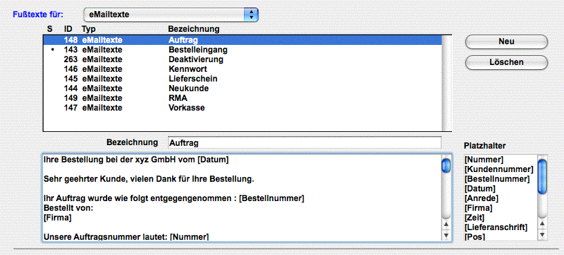 Der Text für die eMail wird in den Einstellungen / Fußtexte im Unterpunkt eMailtexte angelegt.