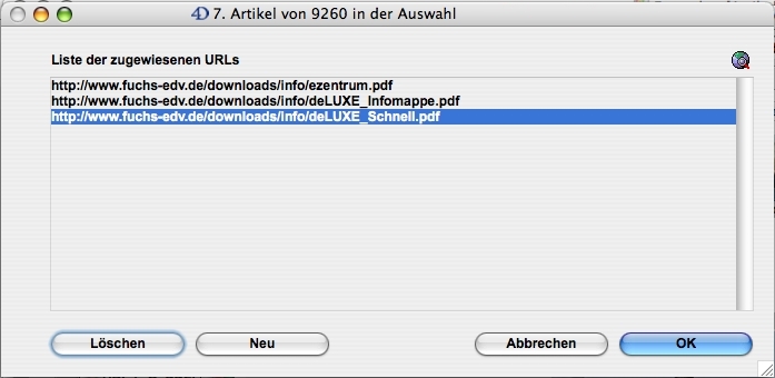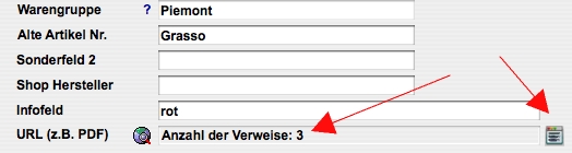 Diese Option ermöglicht es mehrere Verweise zu einem Artikel zu hinterlegen. Es können z.B. PDF Dateien und Verlinkungen auf einen Webserver angegeben werden.