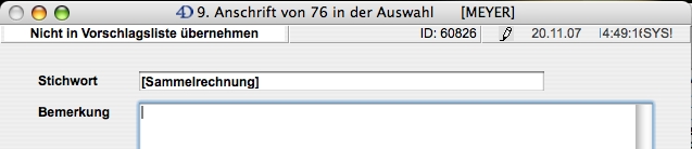 Beim Anlegen eines Auftrages wird nach diesem Stichwort gesucht und ggf. im Feld Bedingungen der Hinweis "Sammelrechnung" eingetragen.