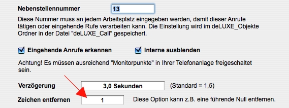 Bei der Erkennung von eingehenden Anrufen, kann nun eine feste Anzahl von Zeichen von der Rufnummer entfernt werden. Dies kann notwendig sein, wenn die Schnittstelle der Telefonanlage z.B. eine führende Null sendet.